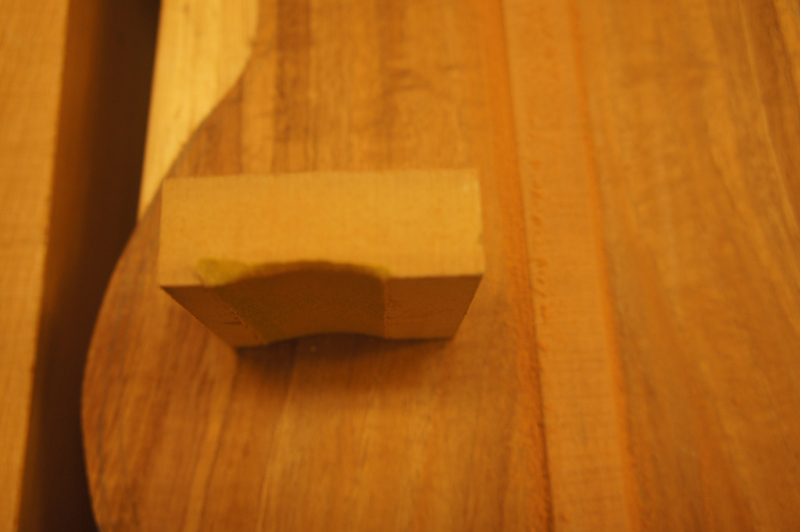 so I had to trim the top to the right shape in the right place so that it would match up and allow the peg head to be glued to the harp neck. I had a good template