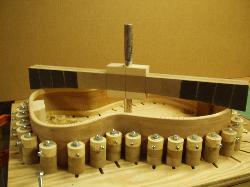 The neck block to tail block taper is precisely set using the height adjusters and the