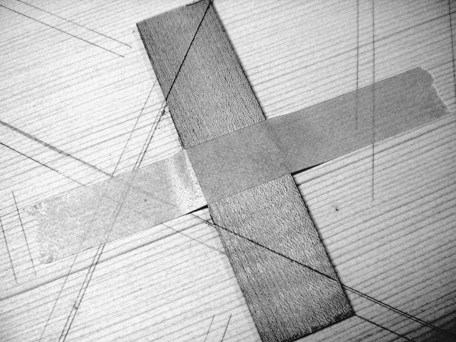 Place one of the “X” braces on the top layout; use some masking tape to keep it from