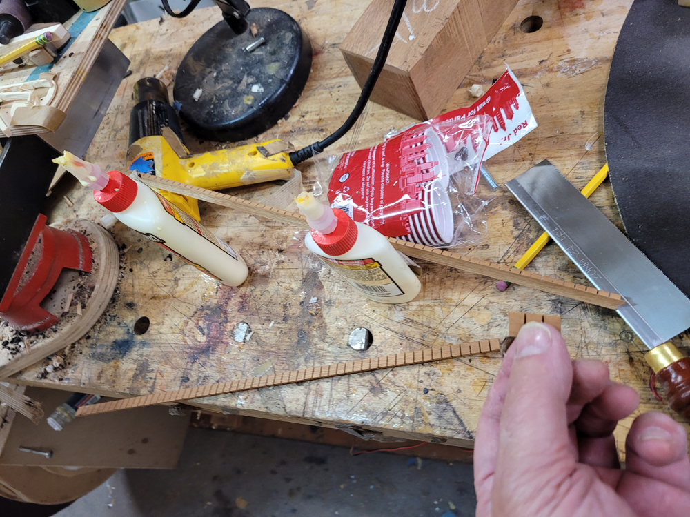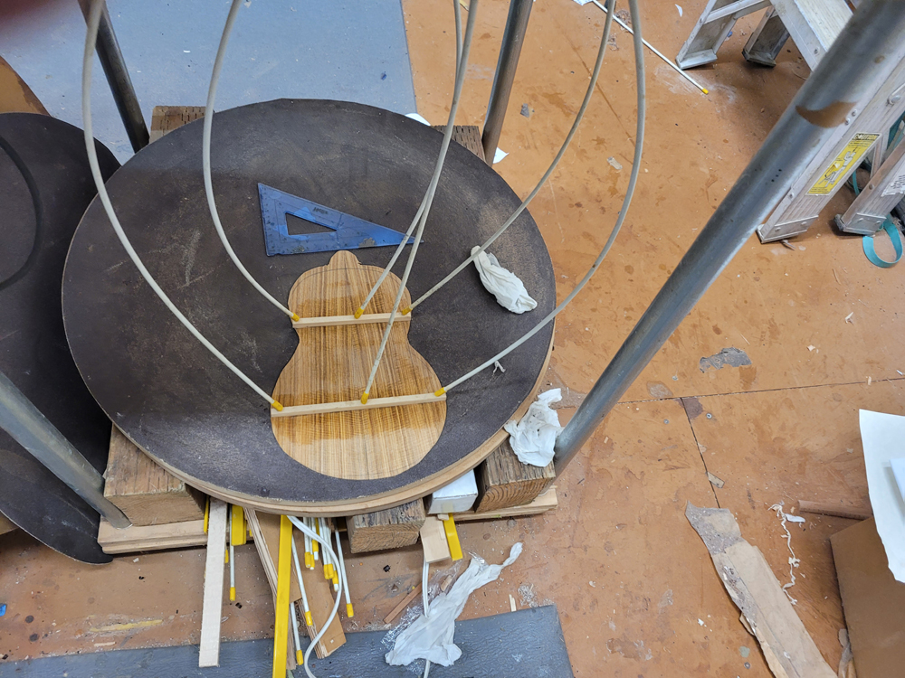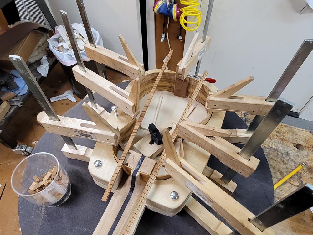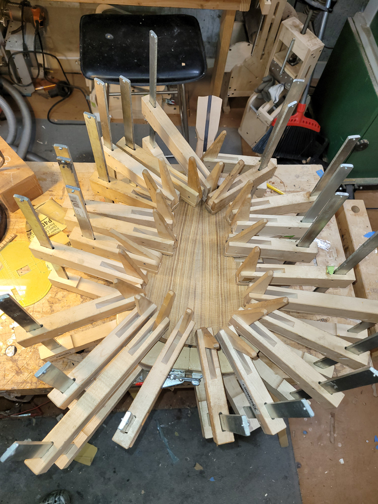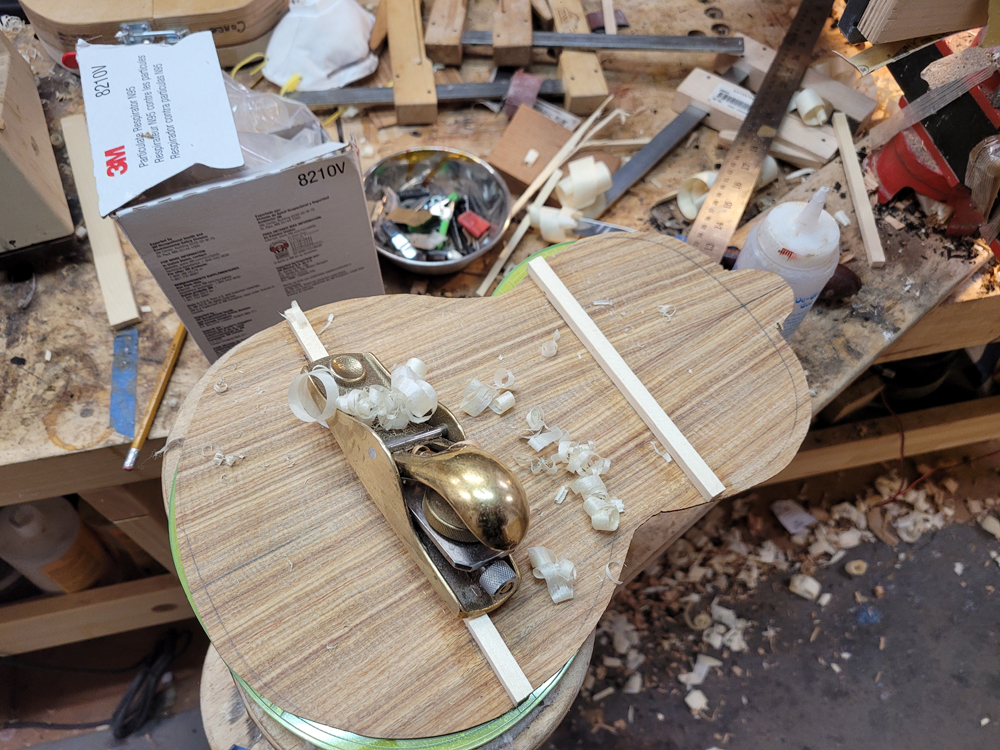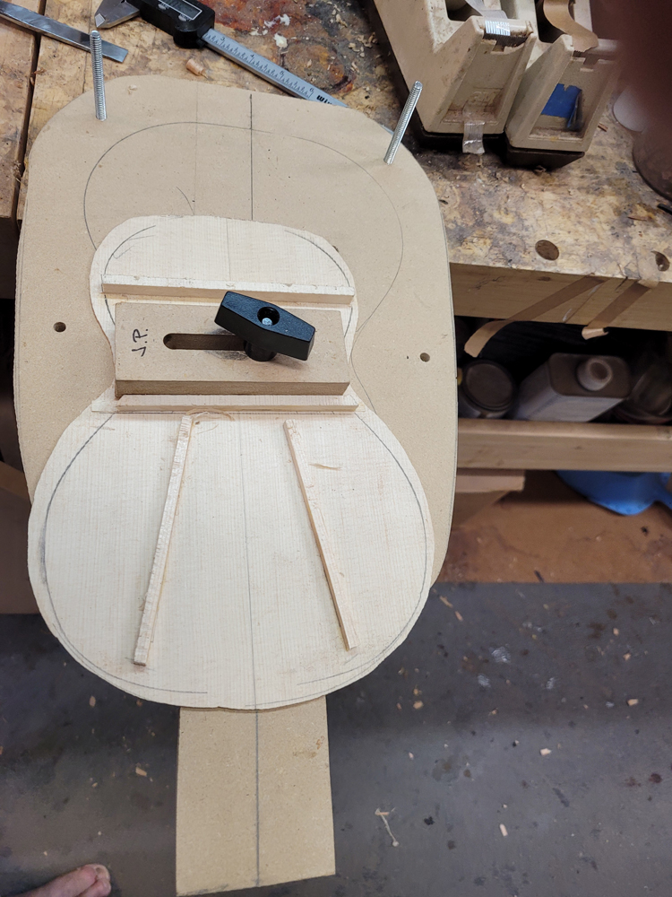 I braced the top with a traditional fan pattern and started shaping the braces.