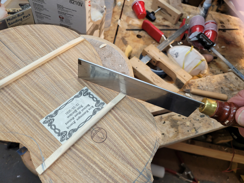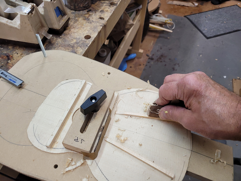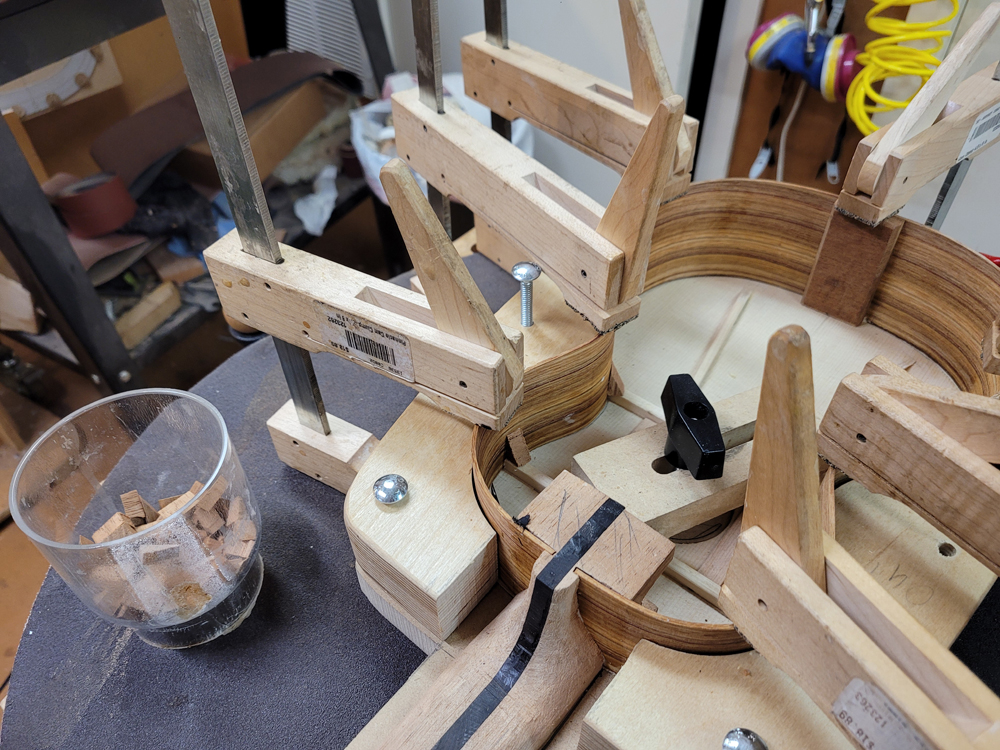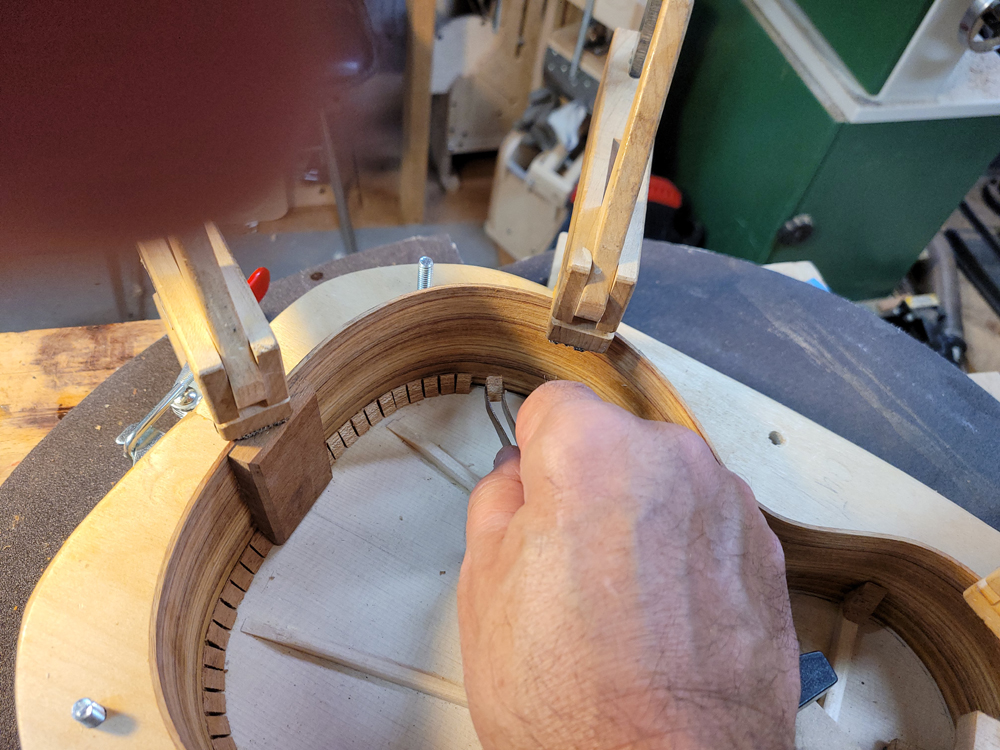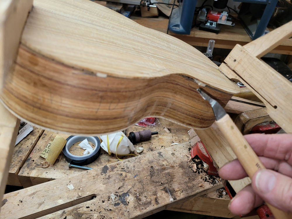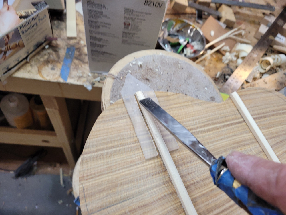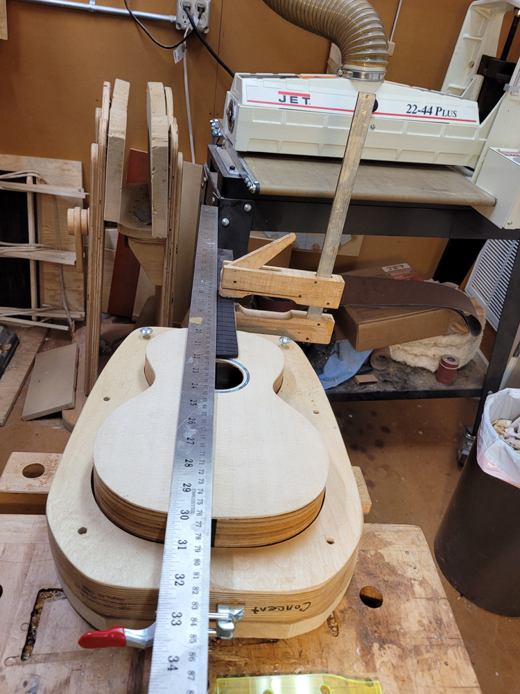 I sanded the rims with a 25-foot radius disk. The profile was really close — I mostly needed to clean up the kerfing.
