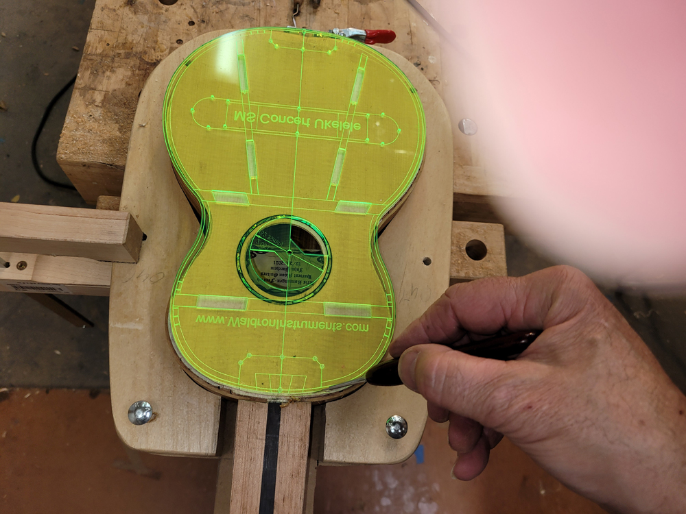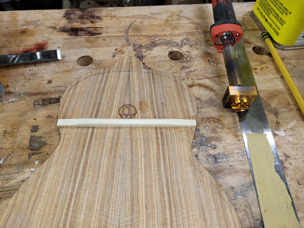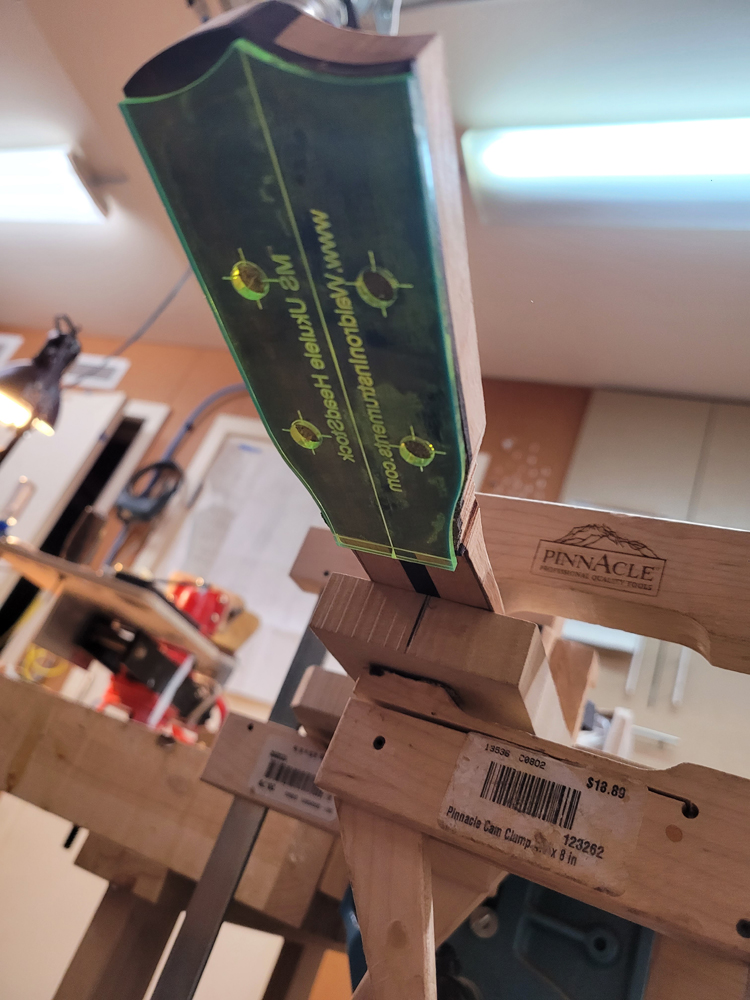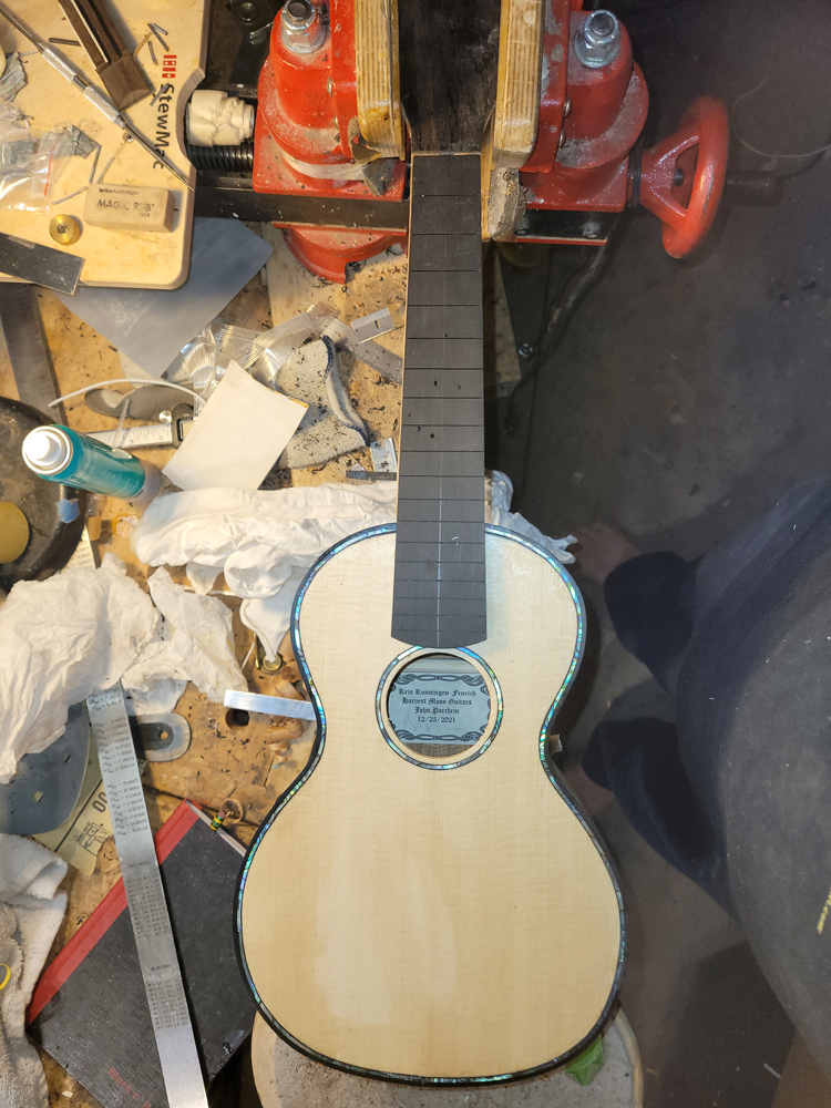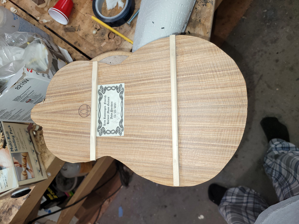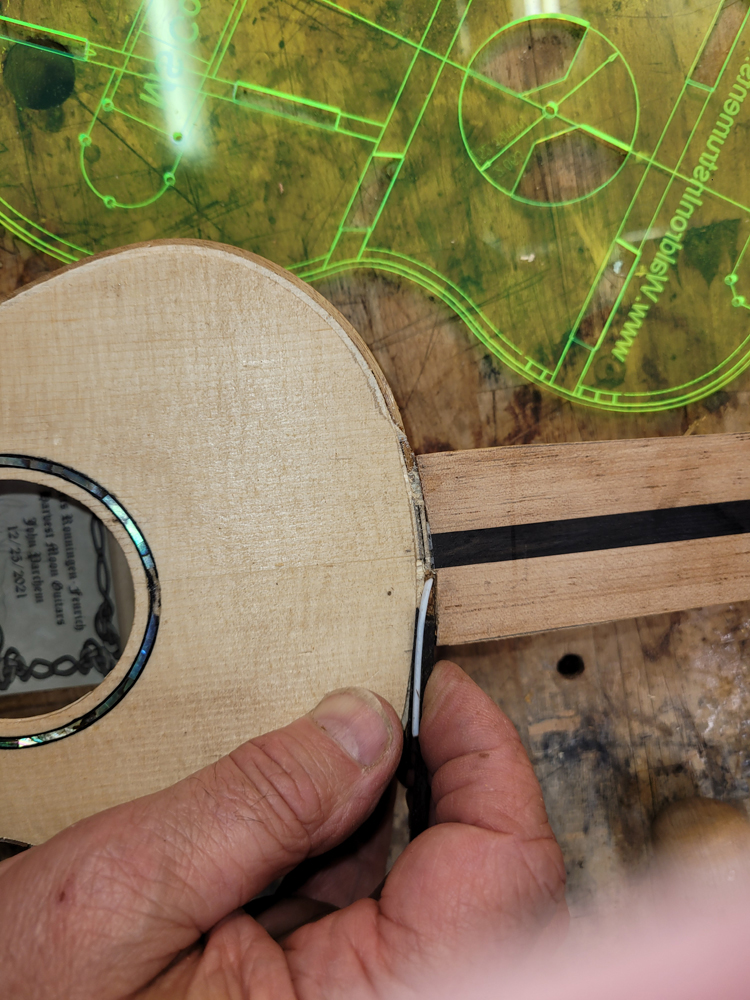 In between football games and during the commercials yesterday I closed the ukulele. Before closing I dealt with the label for the back.