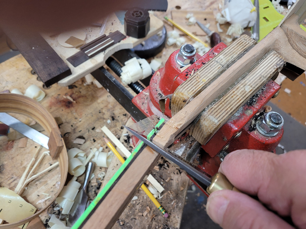 I am finding I really need to take care when working on the neck at this stage — it’s small and there’s not much wood to hold on to.
