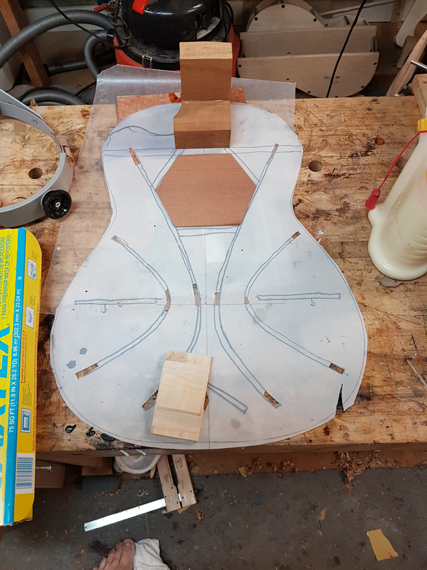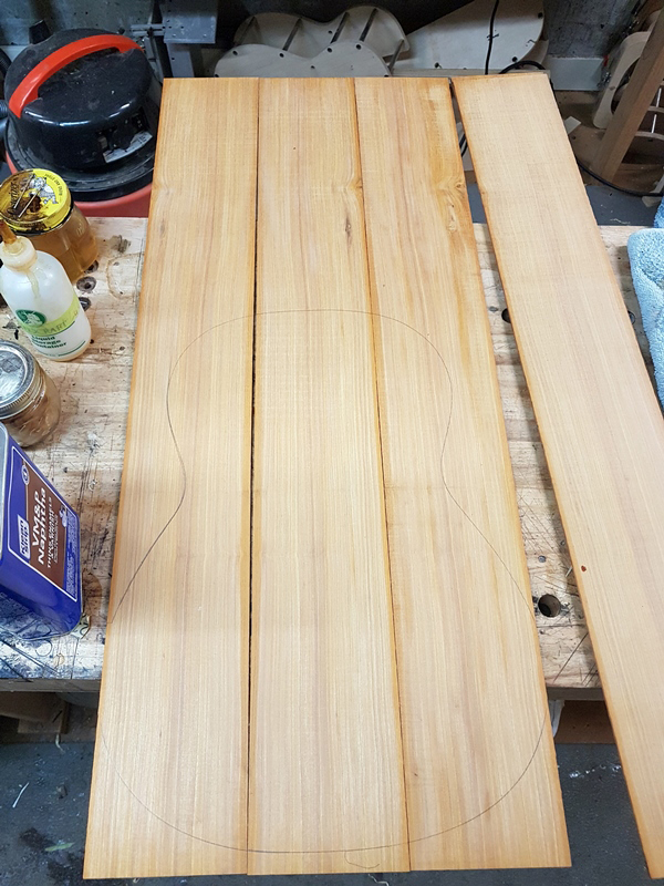 I went through a selection process with the top documented in another thread, going from a user supplied joined top with a rosette to a port orford set and finally a very nice western red cedar top. Here is the thread where I decided the port orford was too dense for a classical [url]http://acousticguitarconstructionforum.com/viewtopic.php?f=34&t=3127[/url]
